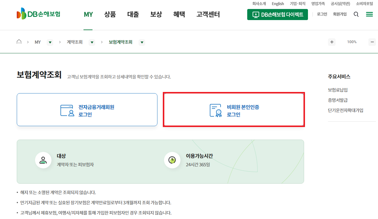 위에 보이시는 DB손해보험 페이지를 들어가